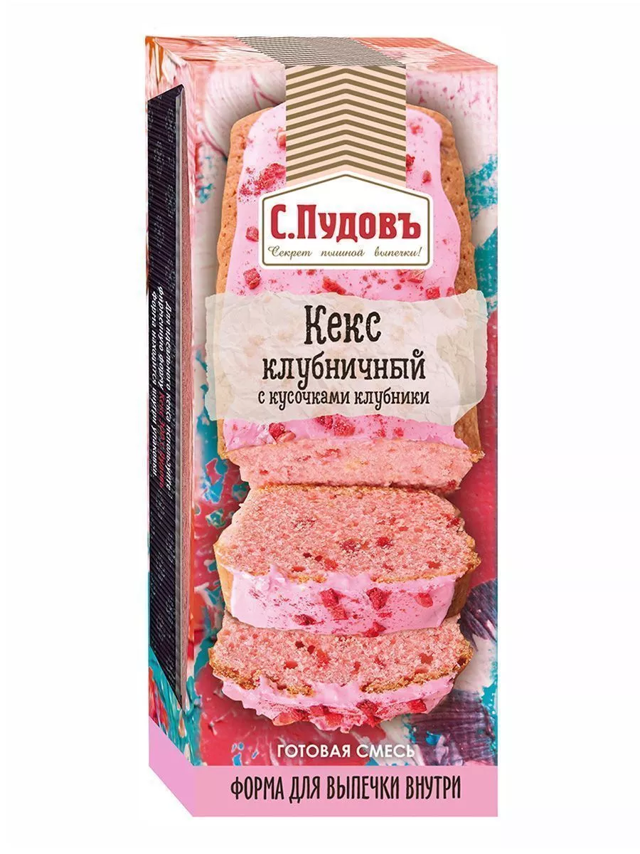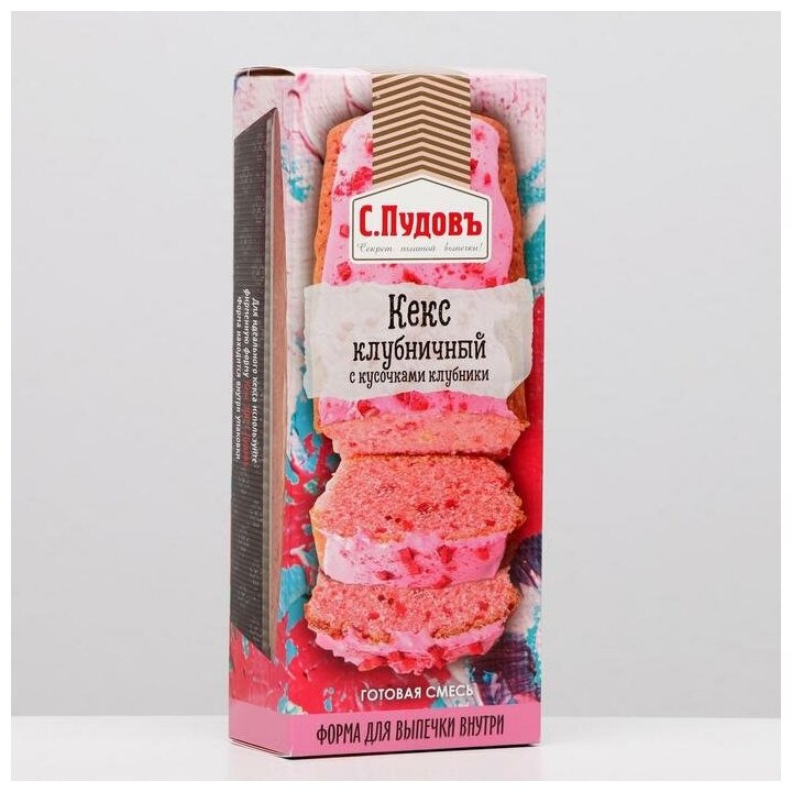 Набор для выпечки "Кекс Клубничный с кусочками клубники" С.Пудовъ, 300 г (смесь, форма) интересное: