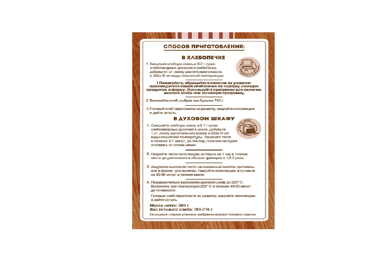| Основа смеси | мука пшеничная / мука ржаная |