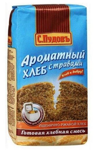 Ниже Вы можете прочитать отзывы на Смесь для выпечки хлеба " Ароматный хлеб с травами" С.Пудовъ, 500 г, ознакомится с подробными характеристиками, посмотреть интересные обзоры и фотографии на Смесь для выпечки хлеба " Ароматный хлеб с травами" С.Пудовъ, 500 г.