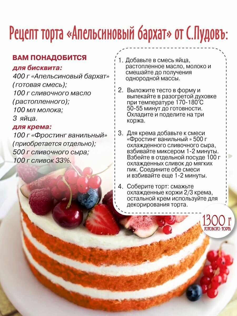 Смесь для выпечки Торт Апельсиновый бархат С. Пудовъ, 400 г