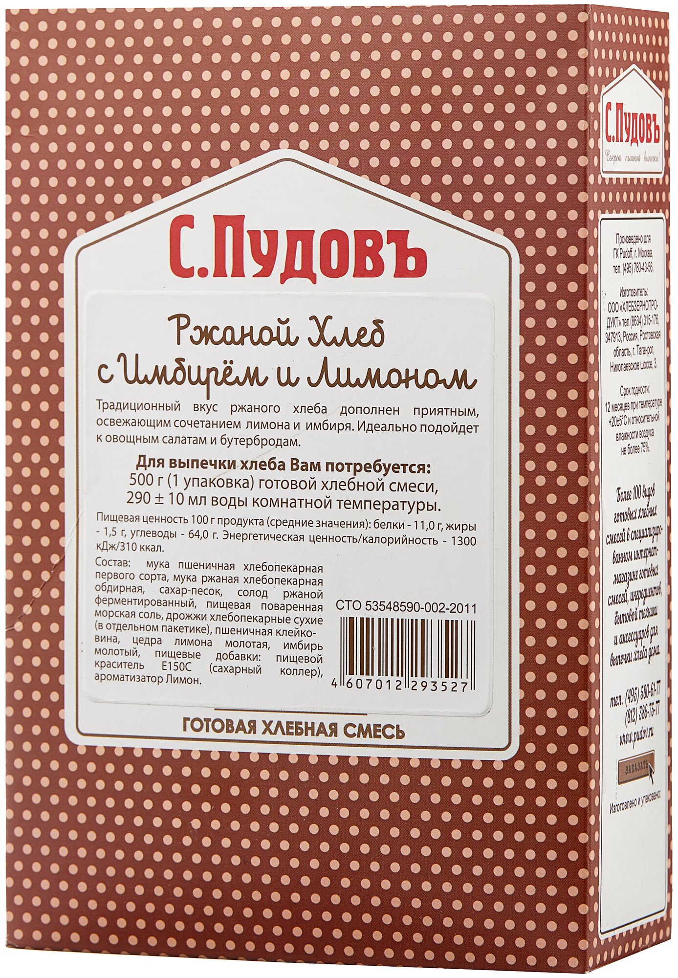 Купить Смесь для выпечки хлеба "Ржаной хлеб с имбирем и лимоном", С.Пудовъ, 500 г