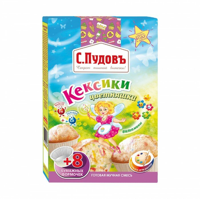 Набор для выпечки "Кексики цветняшки" С.Пудовъ, 250 г (смесь, формочки) интересное: