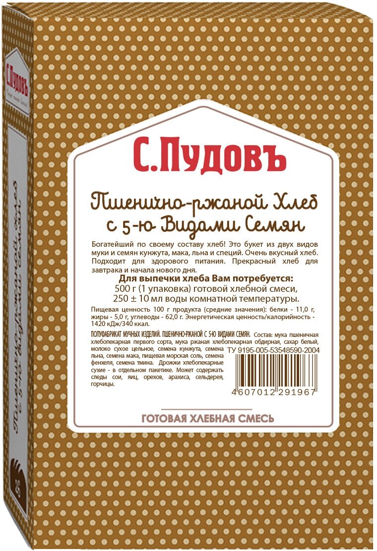Купить Смесь для выпечки хлеба "Пшенично-ржаной хлеб с 5-ю видами семян" С.Пудовъ , 500 г