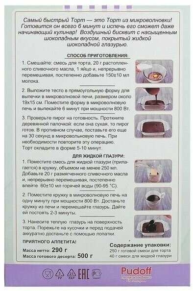 Набор для приготовления торта в микроволной печи "Торт шоколадный", С.Пудовъ, 0.29 кг (смесь, шоколадная глазурь) интересное: