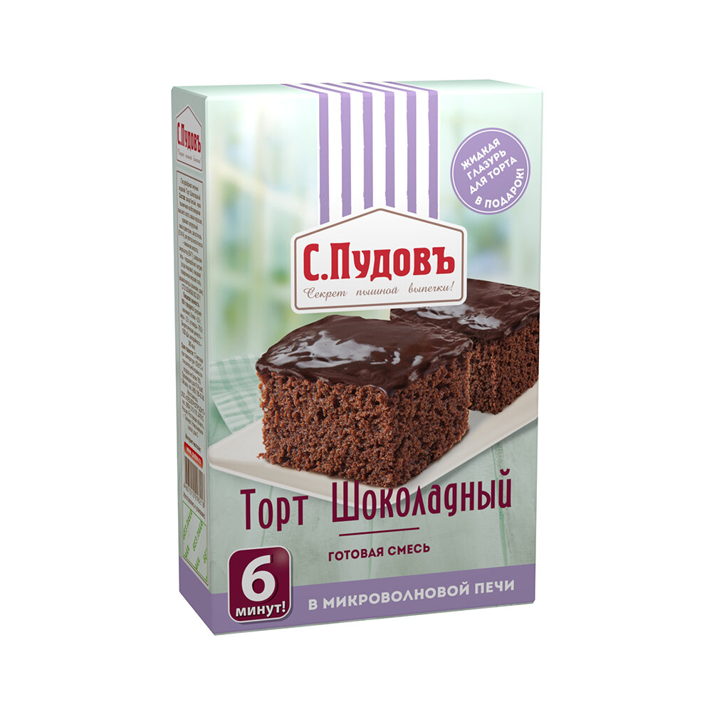 Набор для приготовления торта в микроволной печи "Торт шоколадный", С. Пудовъ, 0.29 кг (смесь, шоколадная глазурь)