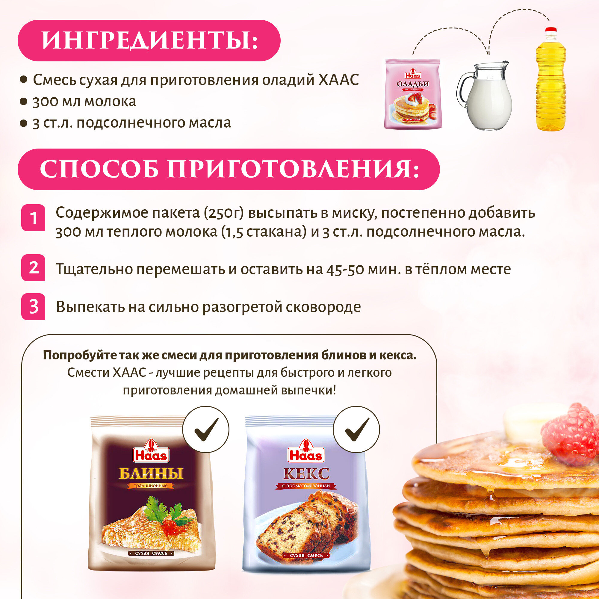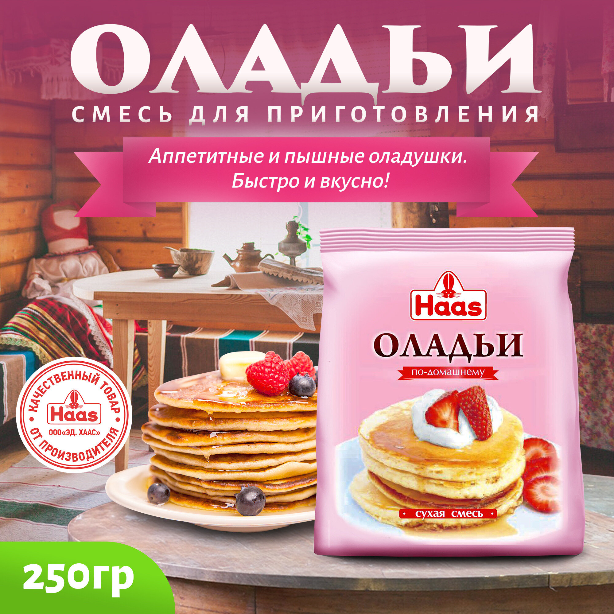 ХААС Сухая смесь для приготовления Оладий, 250 грамм, быстро и вкусно