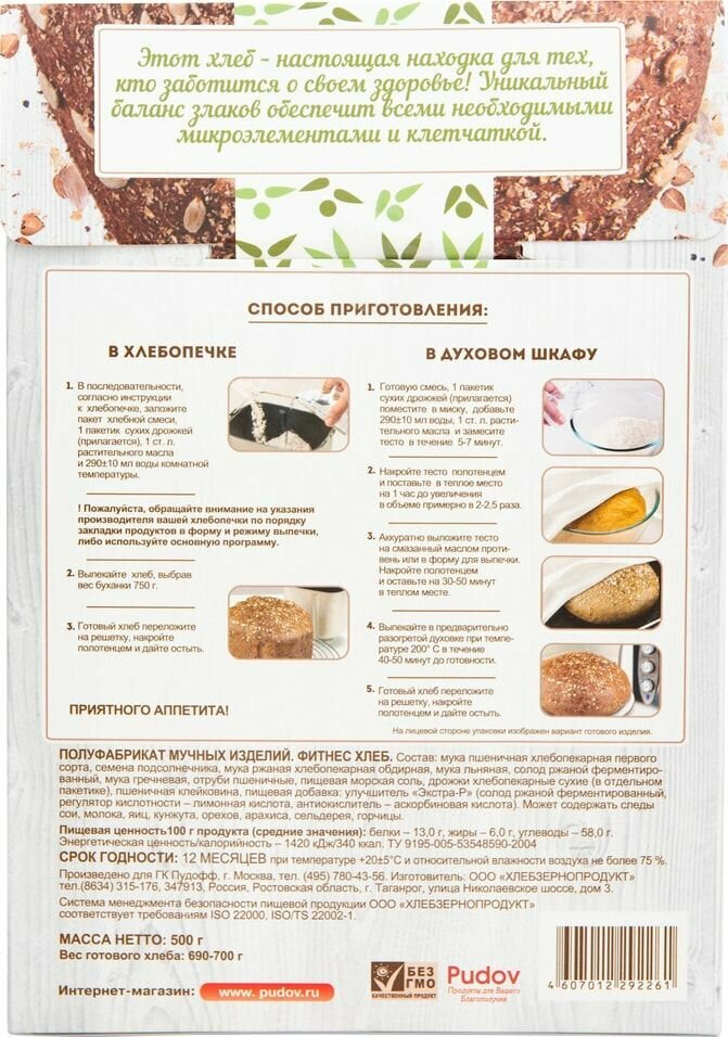 Смесь для выпечки хлеба "Фитнес хлеб" С.Пудовъ, 500 г интересное:
