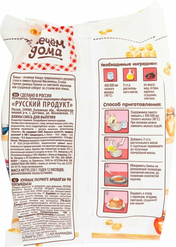 Ниже Вы можете прочитать отзывы на Смесь для выпечки «Печем Дома» Блины, 250 г, ознакомится с подробными характеристиками, посмотреть интересные обзоры и фотографии на Смесь для выпечки «Печем Дома» Блины, 250 г.