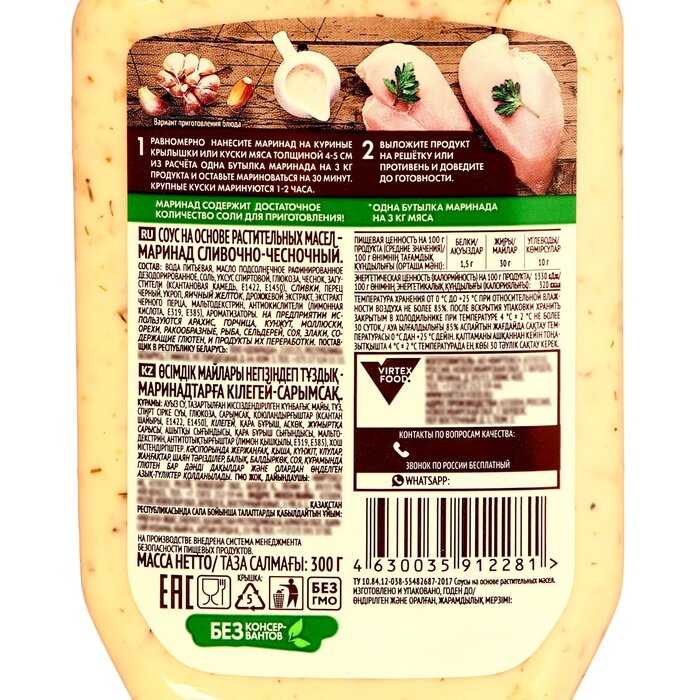 | Состав | Вода питьевая, томатная паста, соль, патока, сахар, ароматизатор коптильный натуральный, регуляторы кислотности (уксусная кислота, лимонная кислота), соевые бобы, пшеница, чеснок, апельсины, концентрированное пюре из чернослива, солодовый экстракт (содержит глютен), дрожжевой экстракт, соевый белок, лактоза, мальтодекстрин, загуститель ксантановая камедь, подсластитель сукралоза, красители (экстракт паприки, кармины, сахарный колер III), ароматизаторы, консерванты (сорбат калия, бензоат натрия). |
