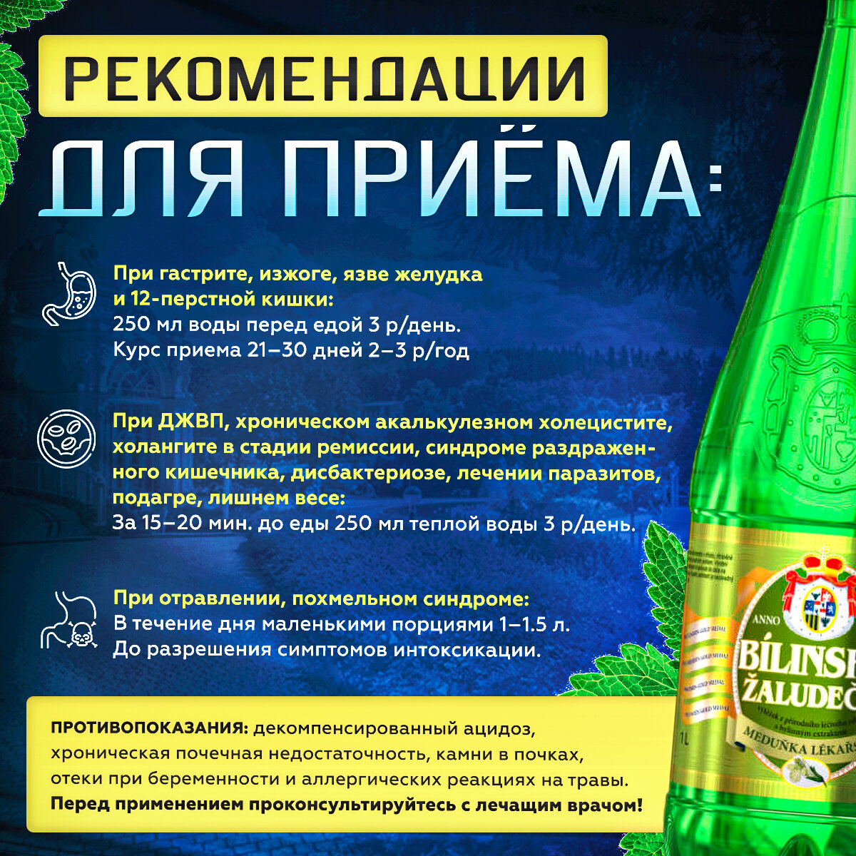 Билинска Киселка c экстрактом Ромашки 1.0 л - 6 шт. Минеральная лечебно-столовая вода с природной газацией (Bilinska Kyselka), Рекомендована от изжоги, гастрите, СРК, ГЭРБ, дисбактериозе, холецистите