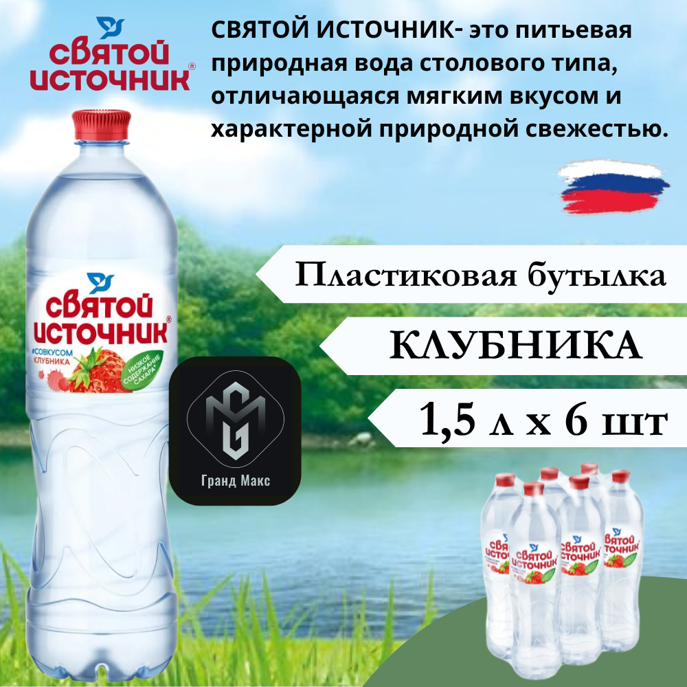 Купить Вода питьевая Святой Источник Клубника, негазированная, ПЭТ, 6 шт. по 1.5 л