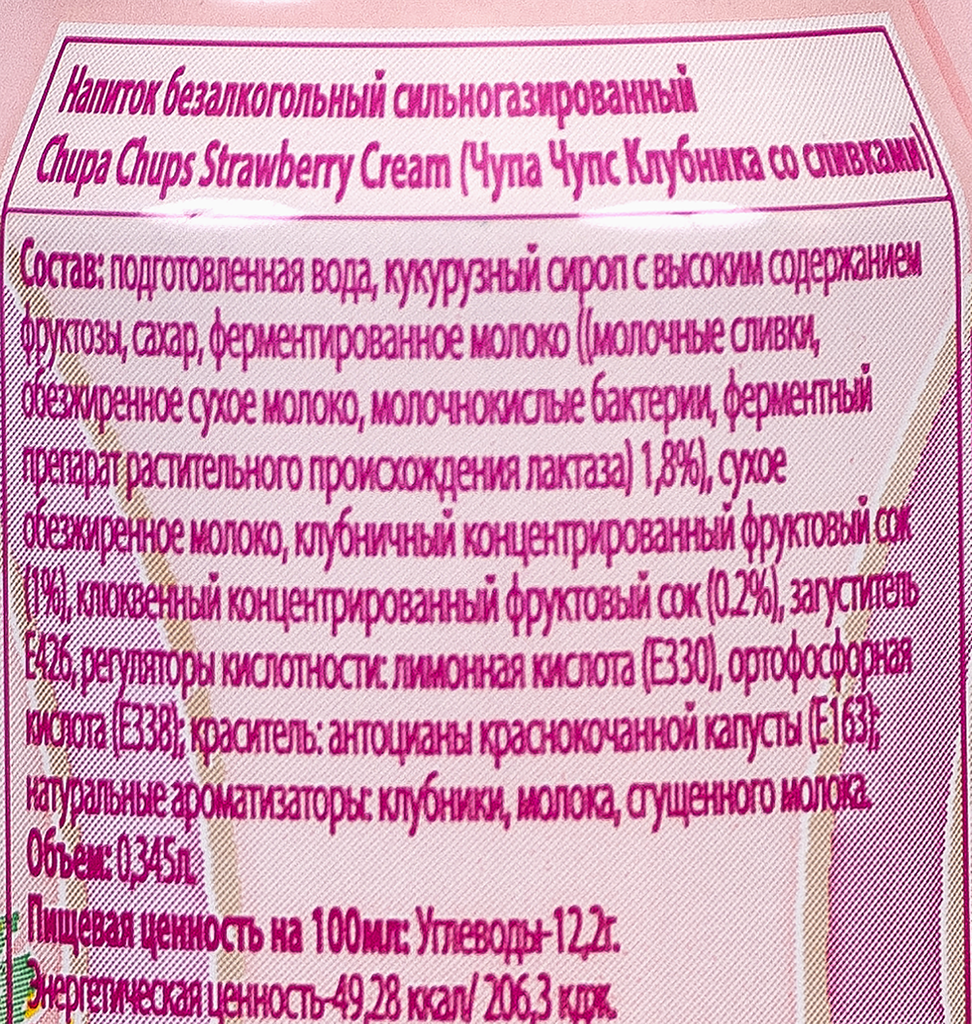 Напиток Chupa Chups, Клубничный Крем, Газированный, Без ГМО, 345 мл