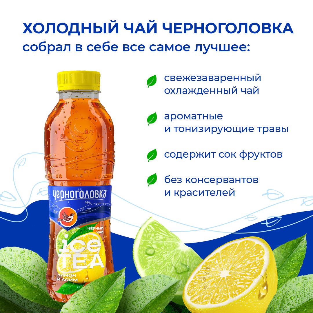 Холодный чай черный Черноголовка "Лайм-лимон", 12 шт по 0,5 л ПЭТ интересное: