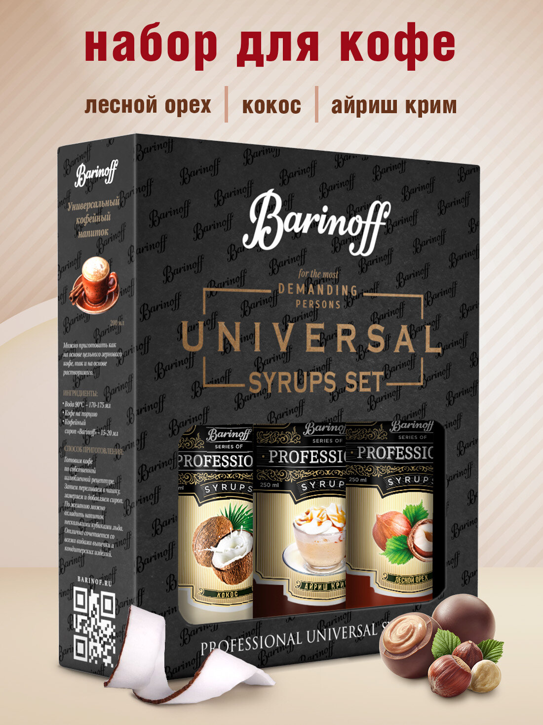 Набор сиропов Barinoff №14 Кокос, Айриш крим, Лесной орех, 3 шт, стекло, 250 мл