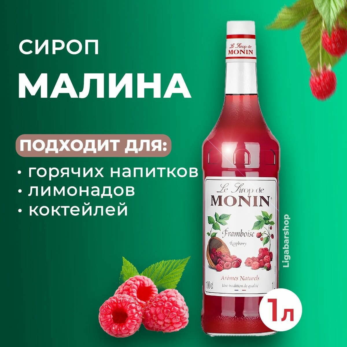 Сироп "MONIN" Малина, 1 литр, стекло интересное: