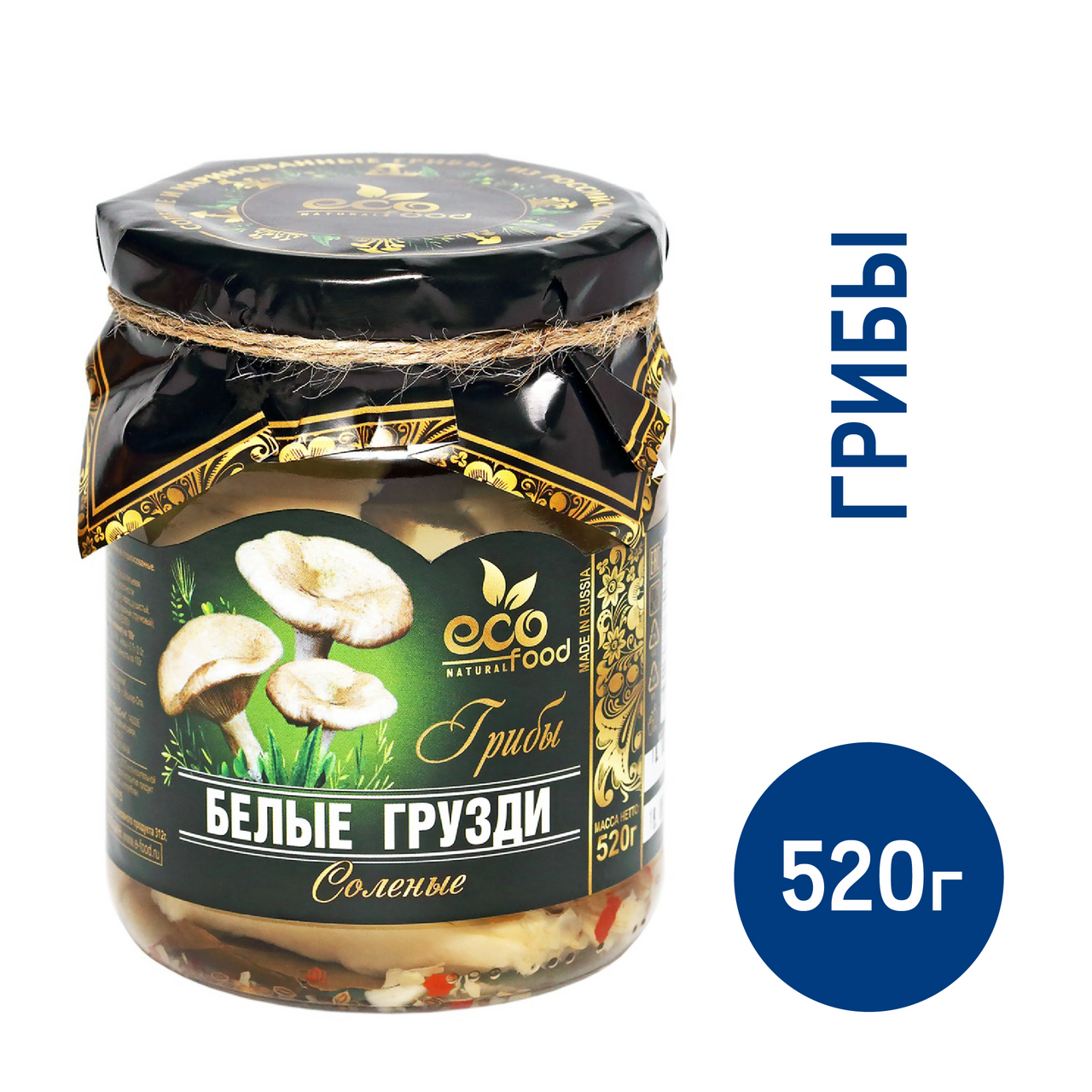 Ecofood Грибы Белые грузди соленые, 520 г