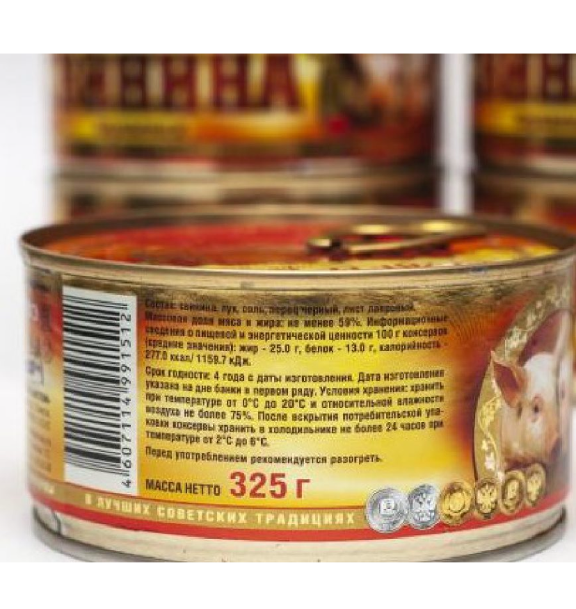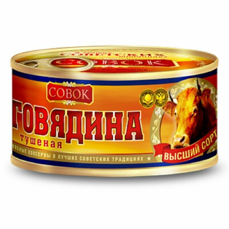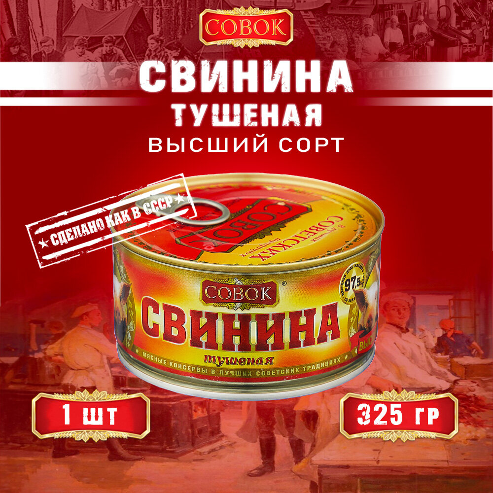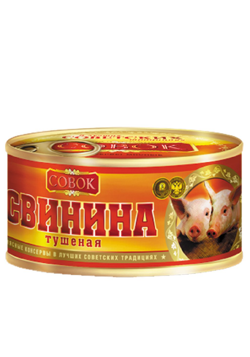 Тушенка "Совок", высший сорт, свинина, ГОСТ, органический продукт, 325 гр
