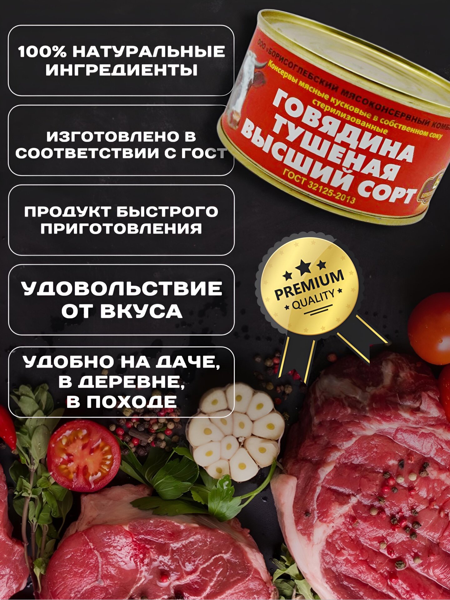 Купить Говяжья тушенка "Борисоглебская" 8 банок