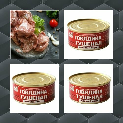 Говядина тушеная Высший сорт, атрус, ГОСТ, 325 г, упаковка 3 банки