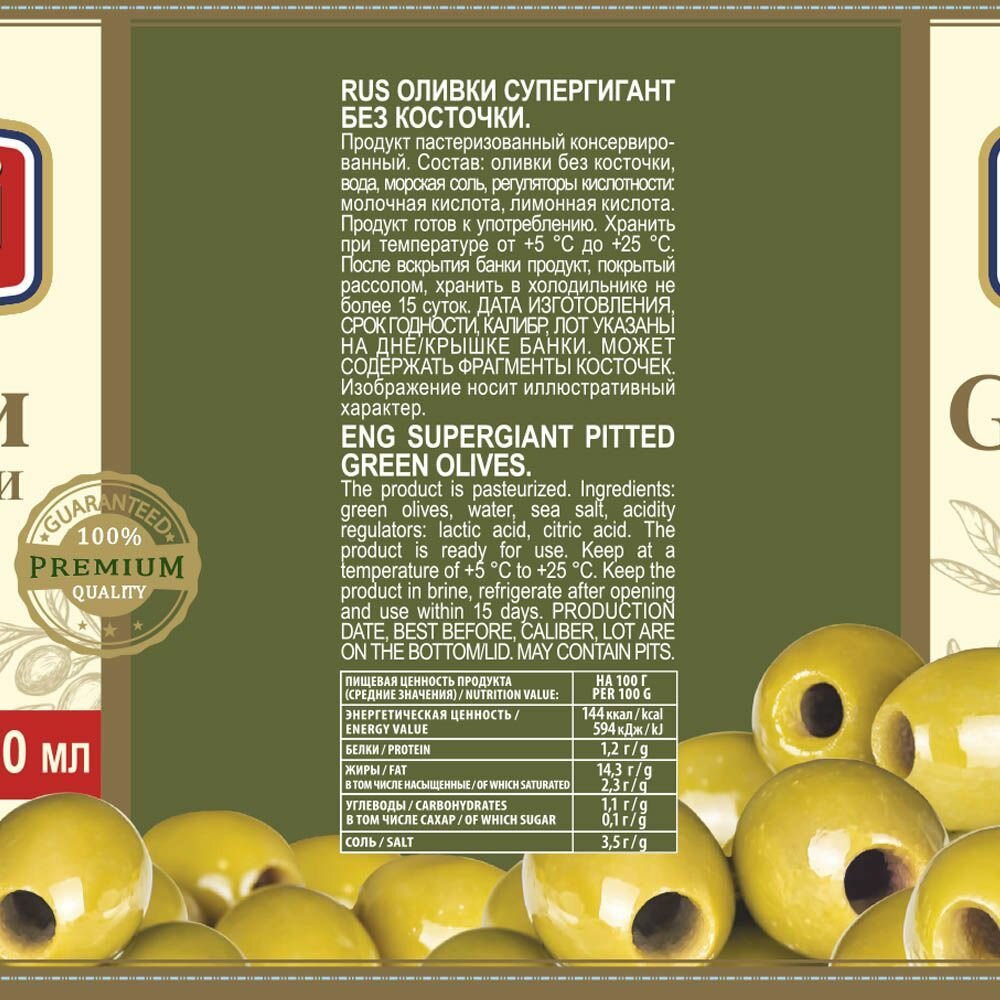 | Дополнительная информация | Оливки крупные без косточки |