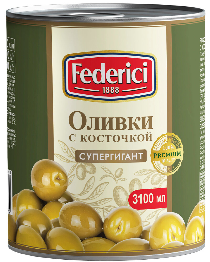 Оливки Federici Супергигант, с косточкой, жестяная банка, 3кг
