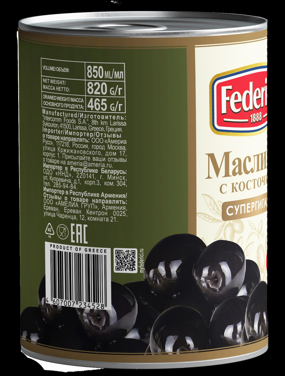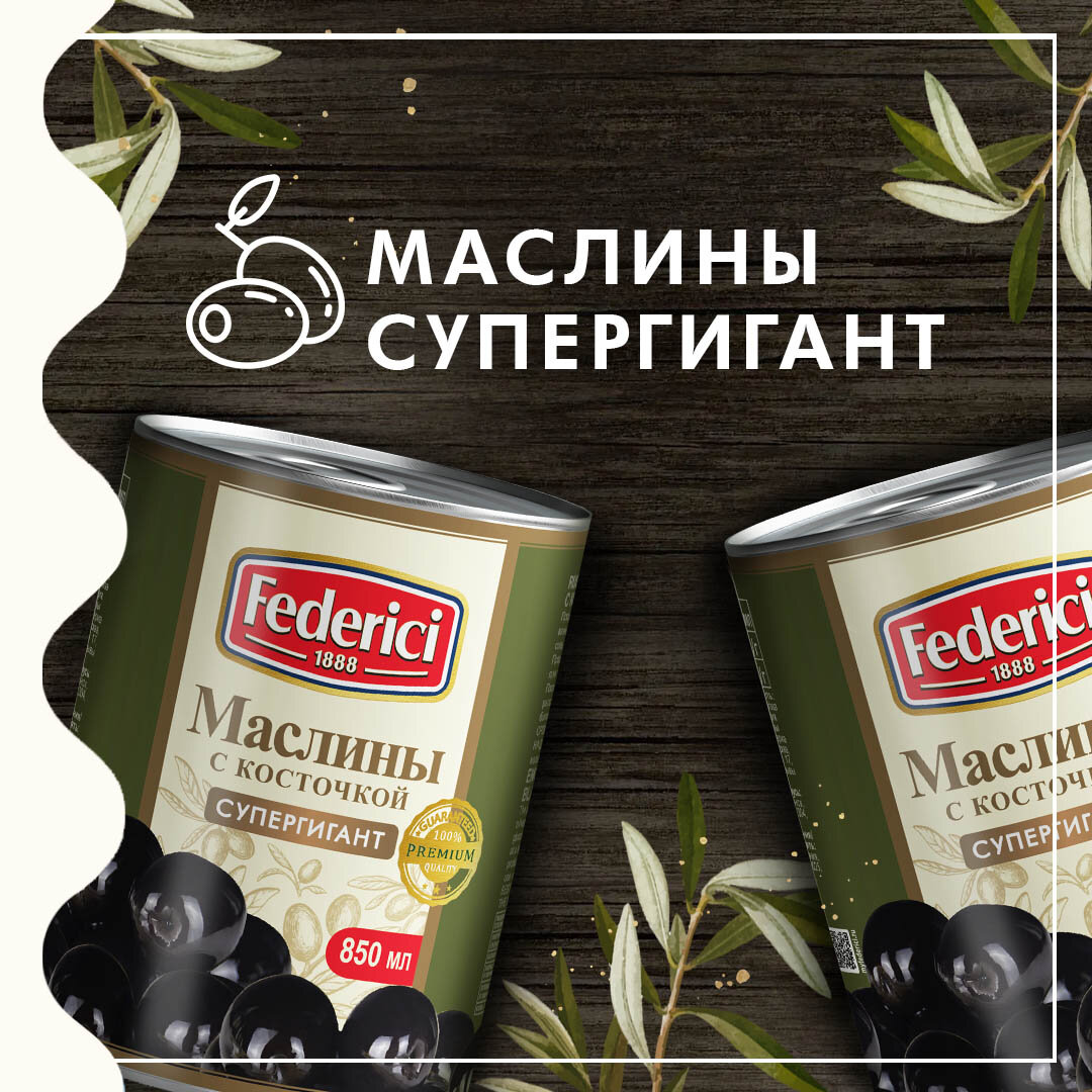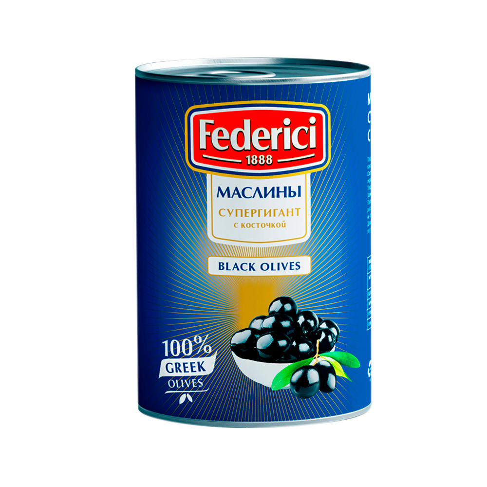Купить Маслины FEDERICI "Супергигант" с косточкой, 820 г, ж.б.