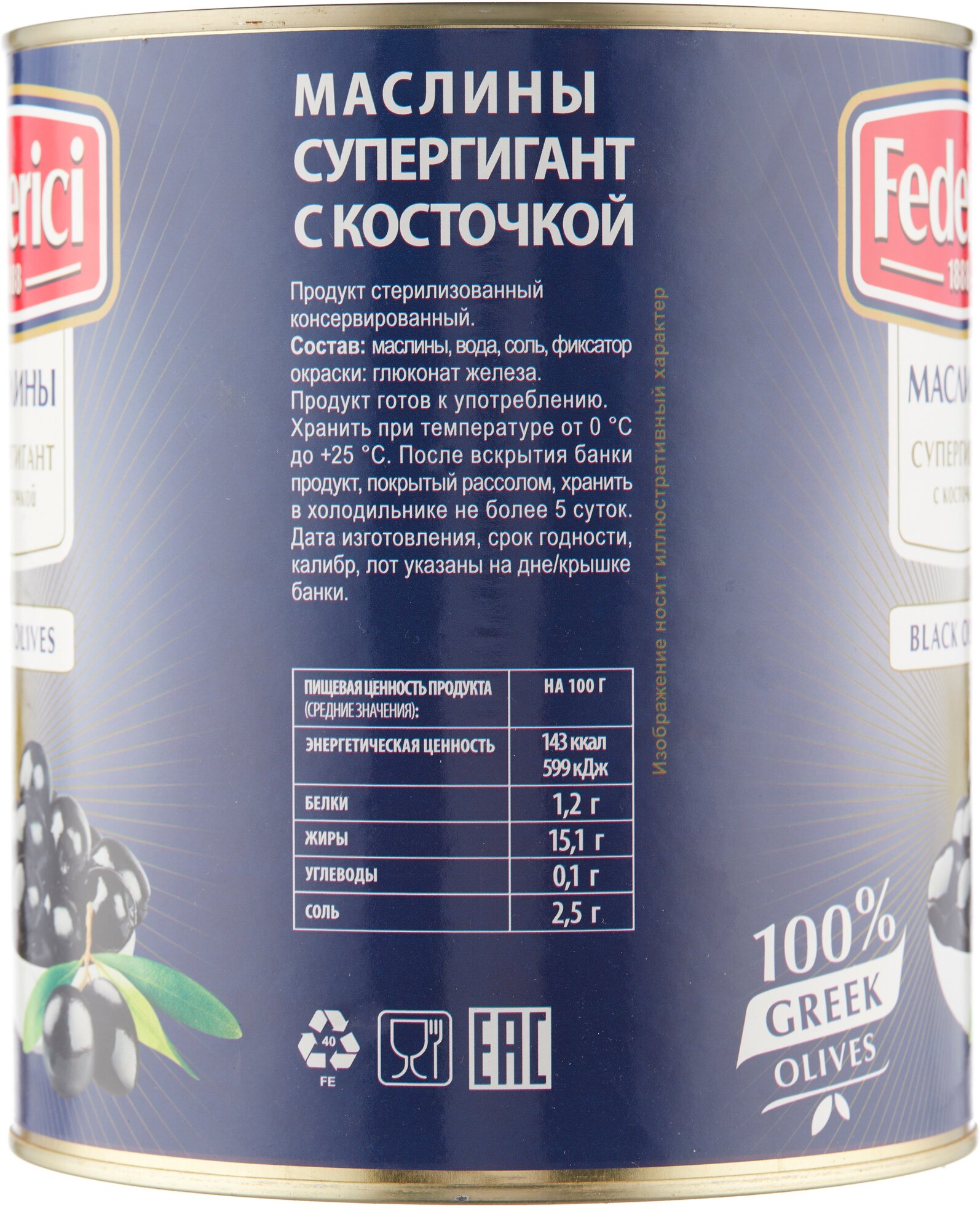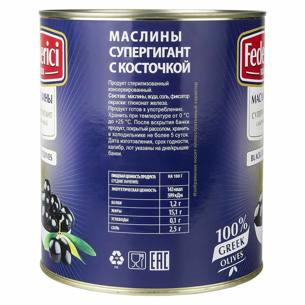 Купить Маслины с косточкой 3 кг Супергигант Federici, 1 шт