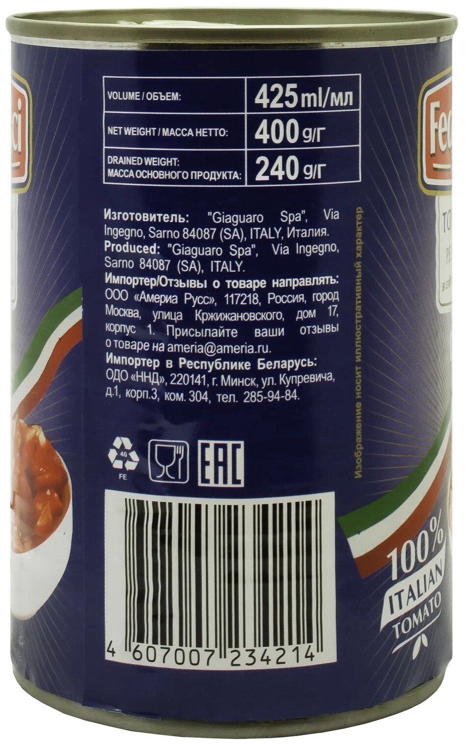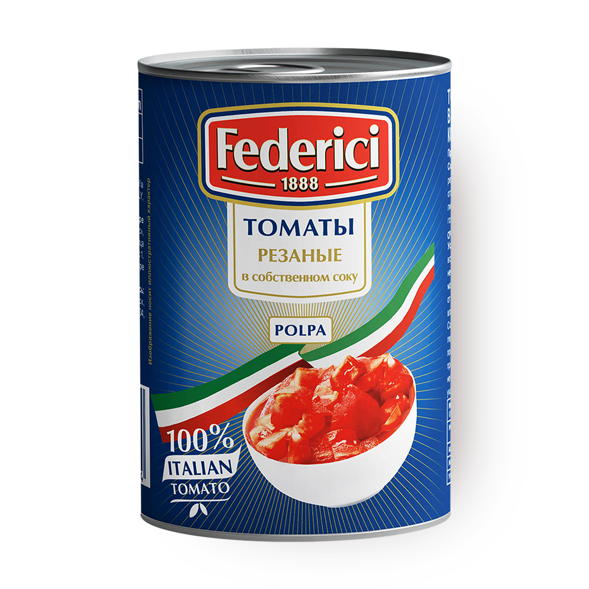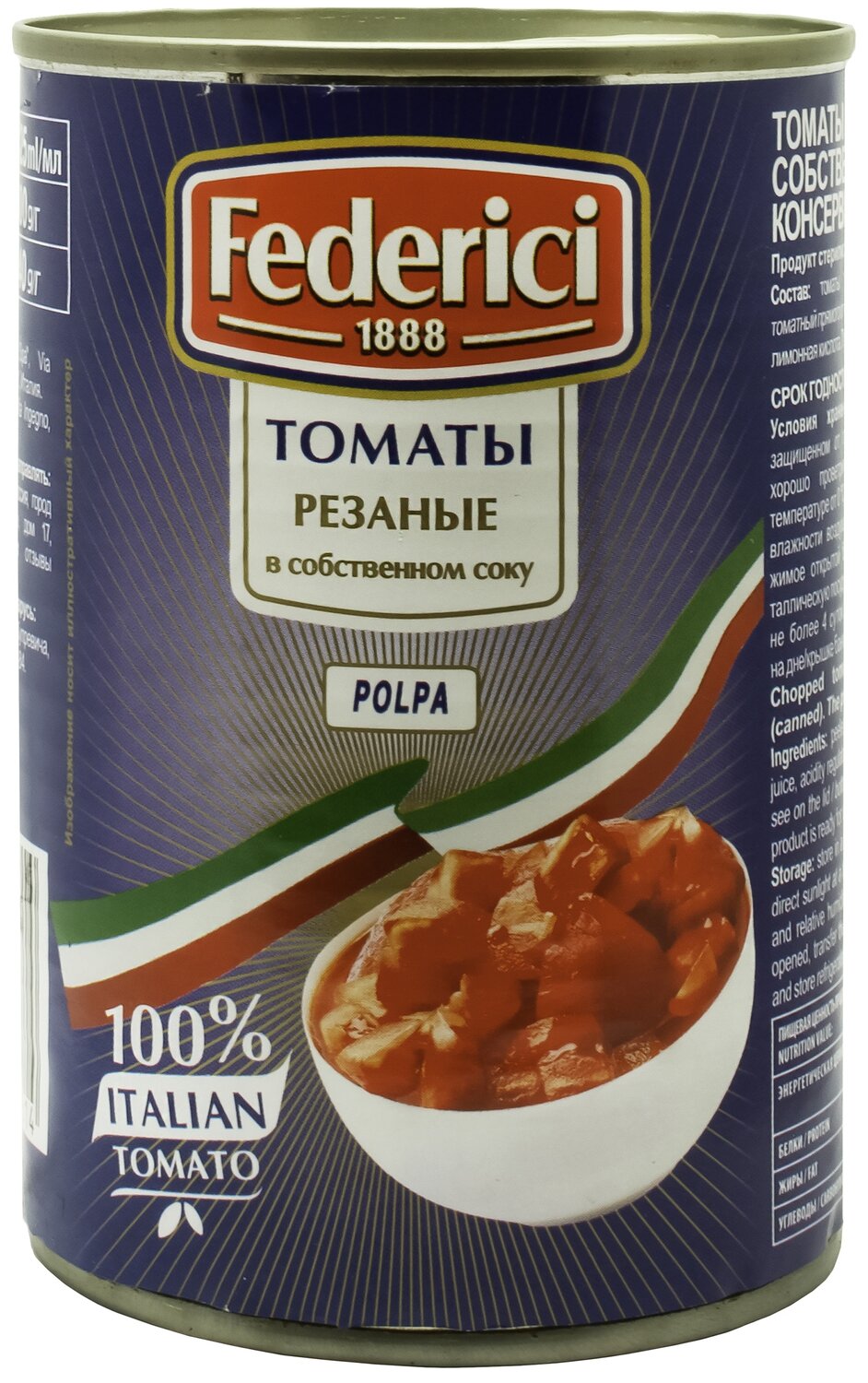 Томаты (помидоры) Federici резаные в собственном соку, 425 мл