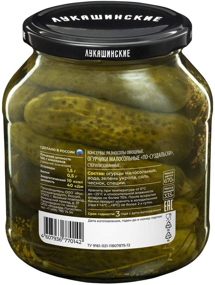 Огурчики малосоленые бочковые по-суздальски лукашинские, 670 г интересное: