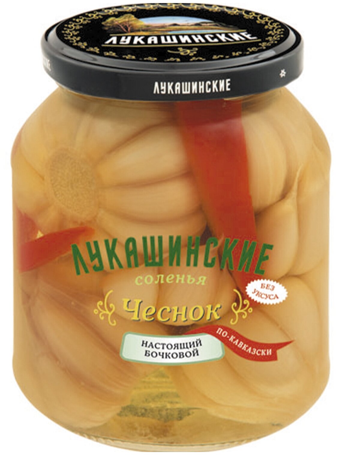Лукашинские Овощные консервы Чеснок соленый По-кавказски, настоящий бочковой, 340 г