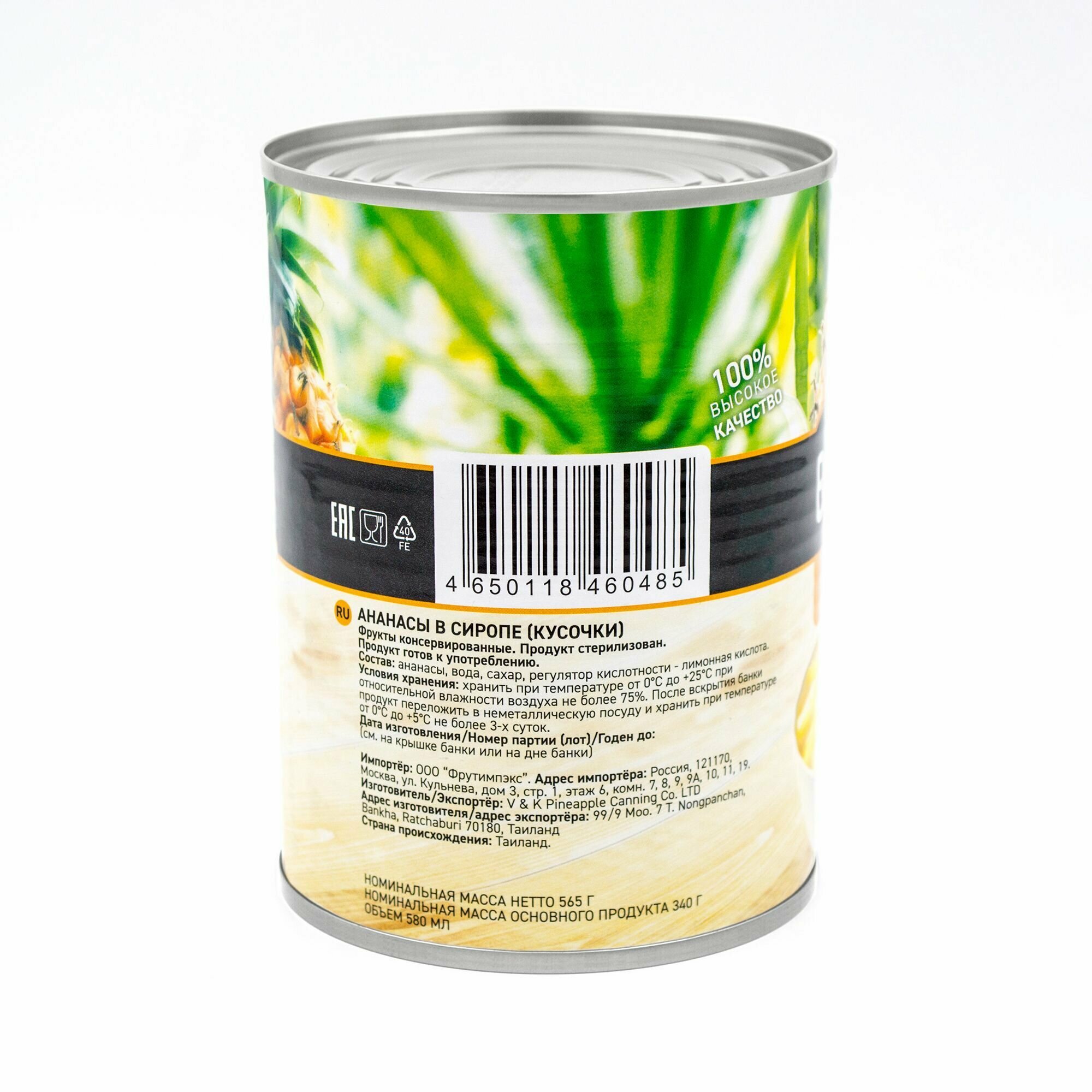 Ананасы BOTANICA кусочки в сиропе, 565г