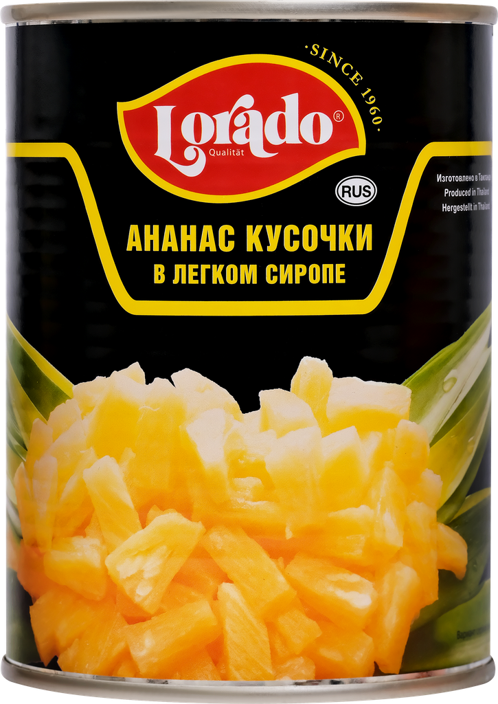 Купить Ананас кусочки, в легком сиропе, Lorado, 1 шт. по 580 мл