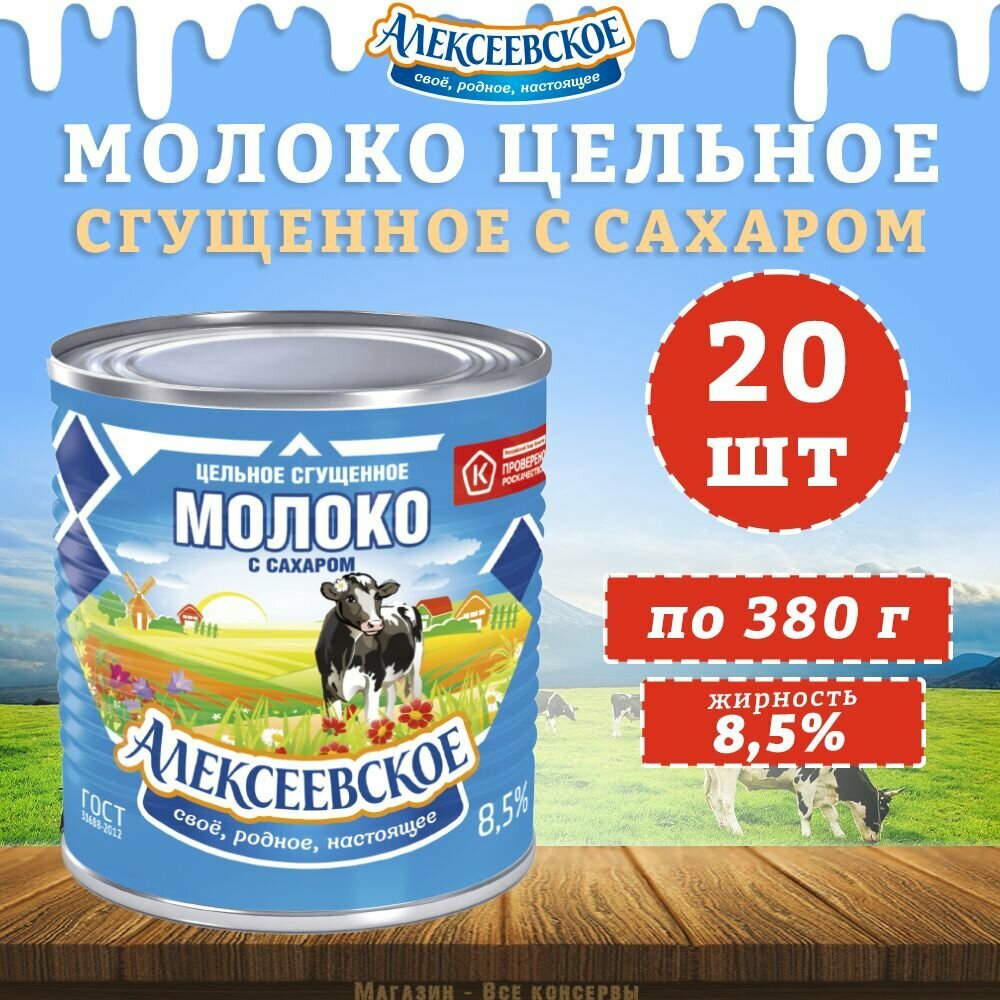 Молоко цельное сгущенное с сахаром 8,5%, Алексеевское, 20 шт. по 380 г