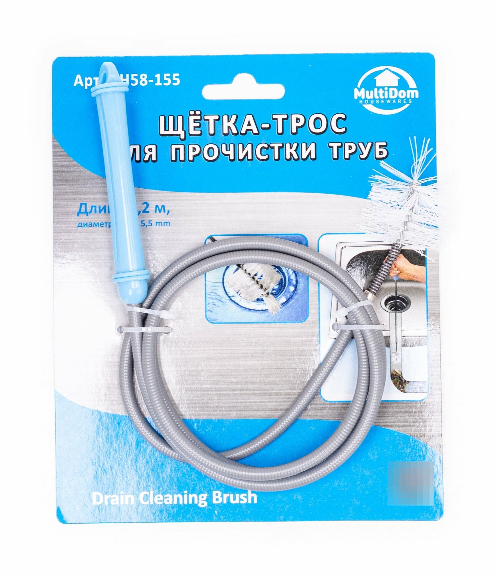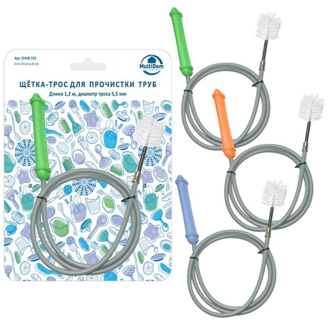 | Комплектация | Щетка-трос для прочистки труб. Длина 1,2 м, диаметр 5,5 мм DH58-155, Мультидом |