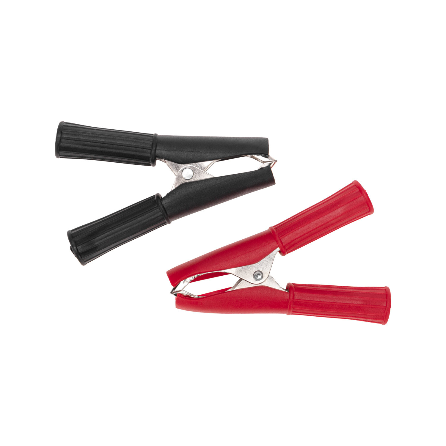 Зажим Крокодил REXANT 15A/53 мм, 2 штуки, цвет черный/красный, изоляция ПВХ