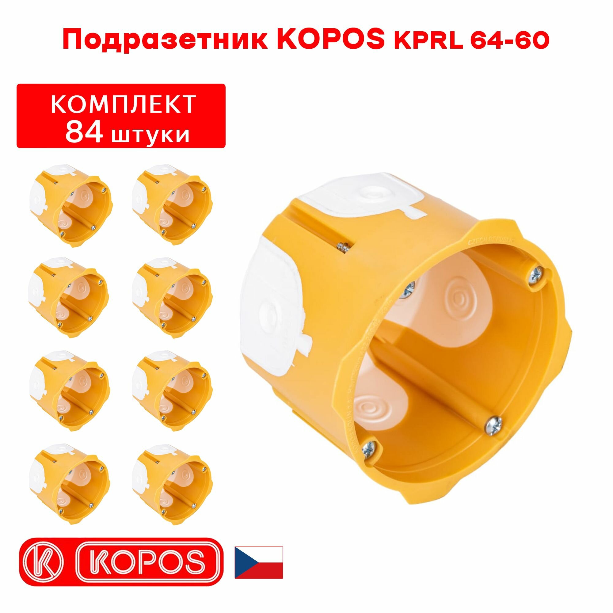 Подрозетник KOPOS KPRL 64-60 увеличенной глубины герметичный для пустотелых, гипсокартонных и деревянных стен. комплект: 84штуки