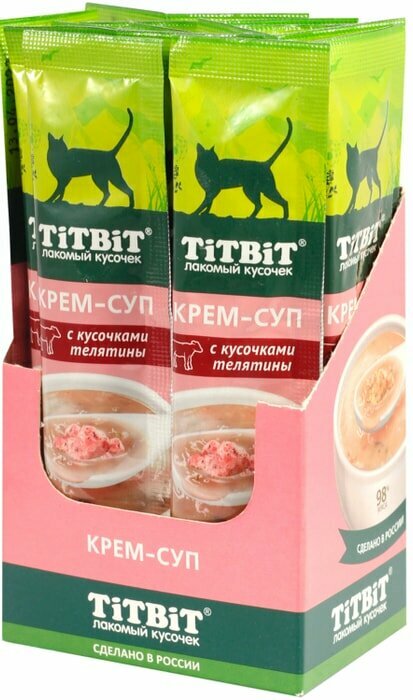 Купить Лакомство для кошек TiTBiT Крем-суп с кусочками телятины, 10г х 16 шт.