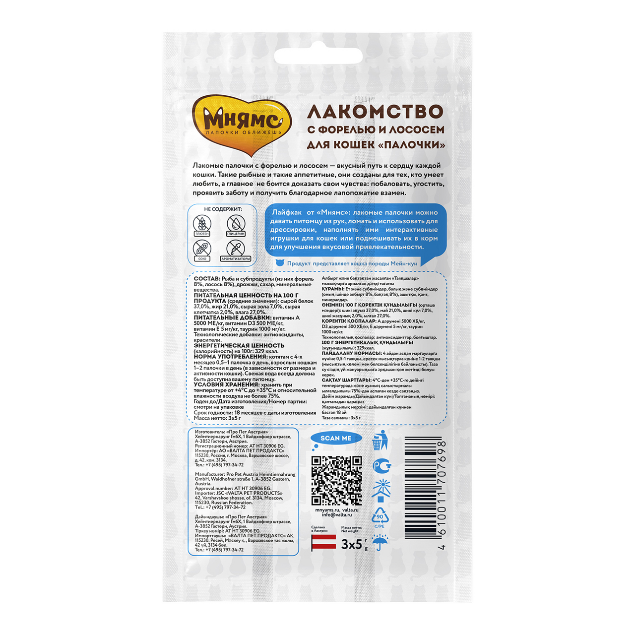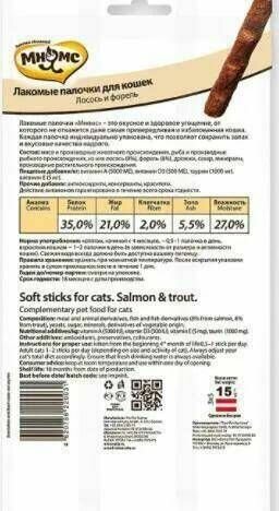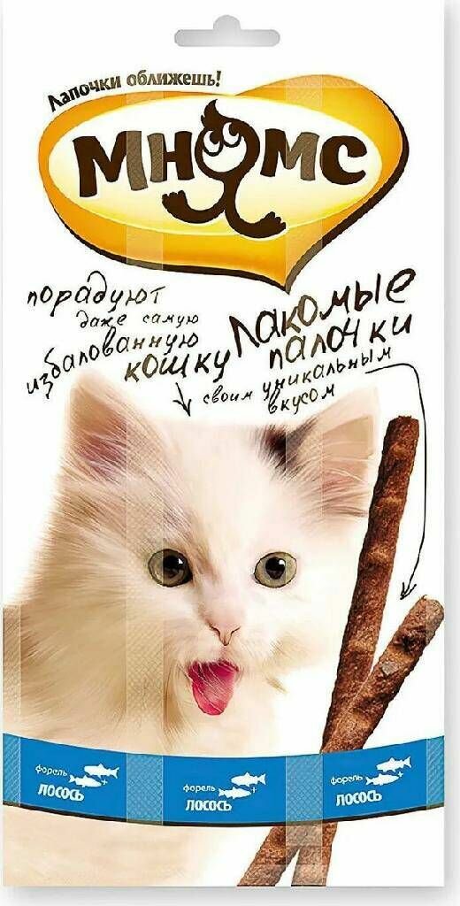 Мнямс лакомые палочки для взрослых кошек с форелью и лососем 13,5 см - 3х5 г интересное: