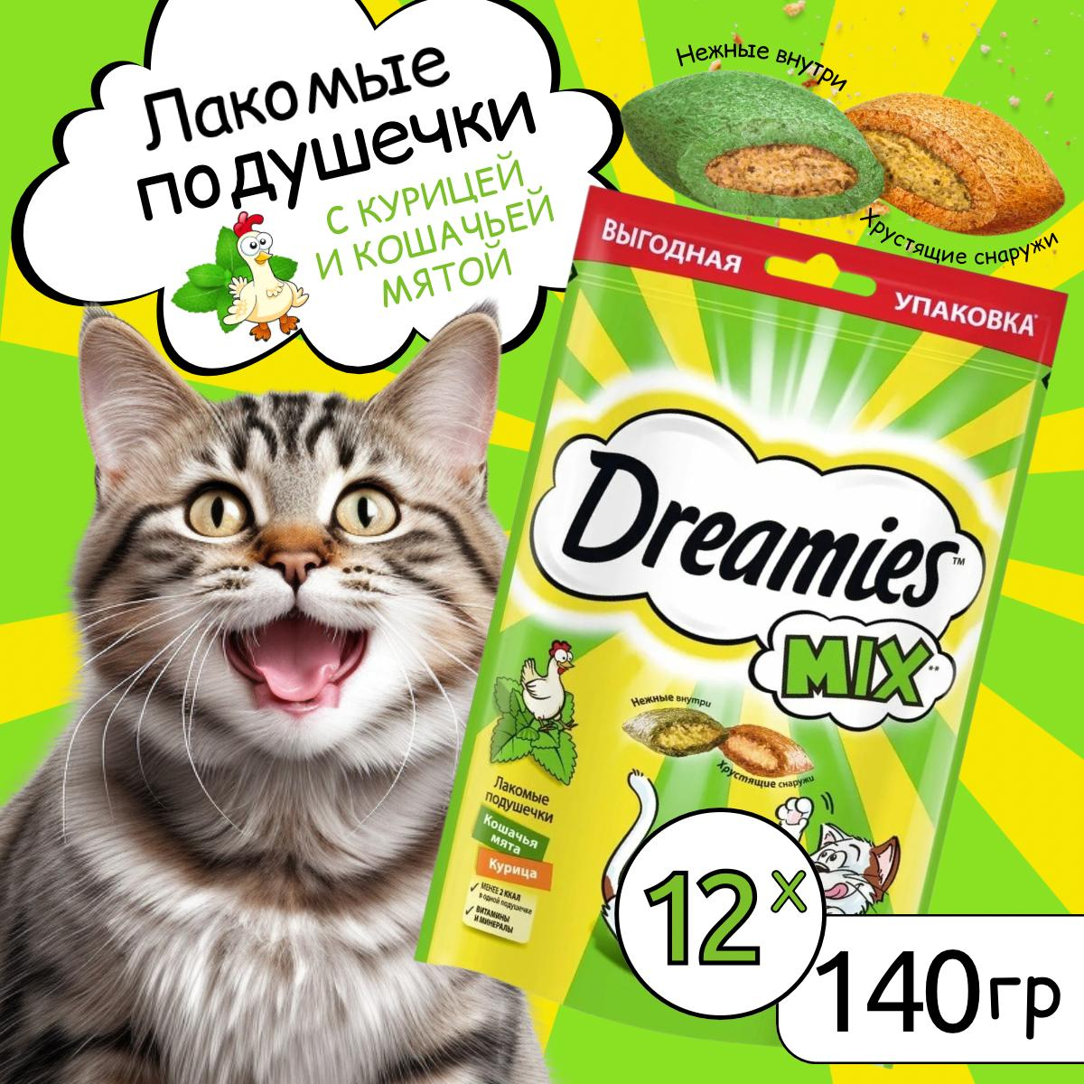 Лакомство Dreamies™ MIX для взрослых кошек, с мятой и курицей, 12 шт по 140г интересное: