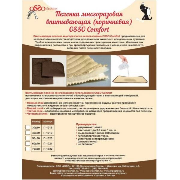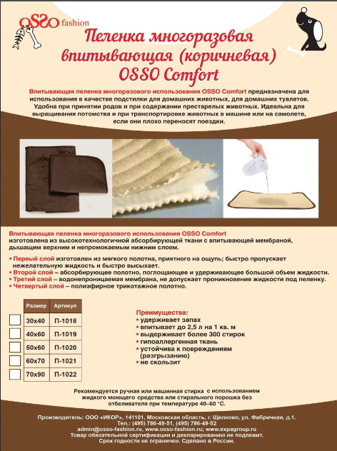 СохранитьOSSO Fashion Многоразовая пеленка для собак (коричневая) 30*40см интересное:
