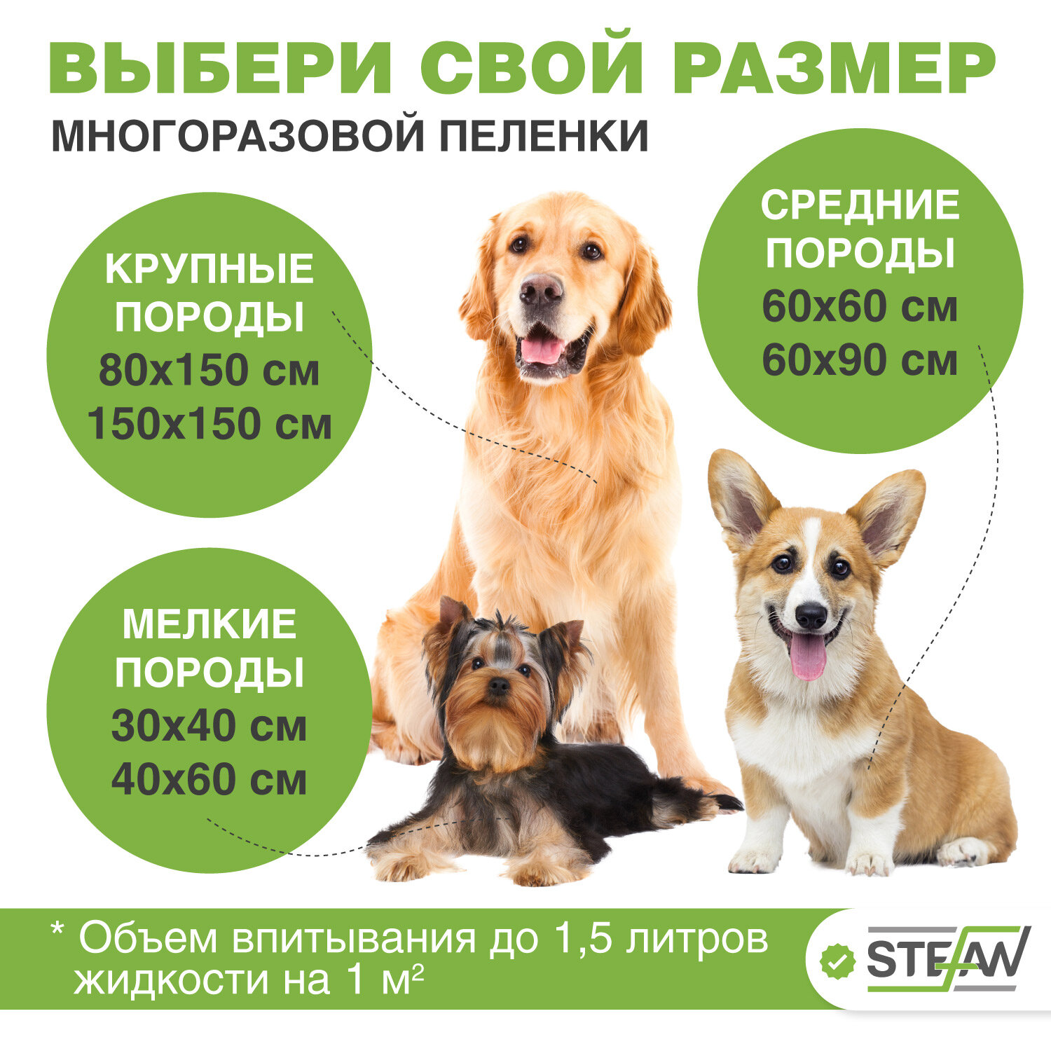 Пелёнка многоразовая для собак STEFAN (Штефан) STANDARD 60х60см, S-60601