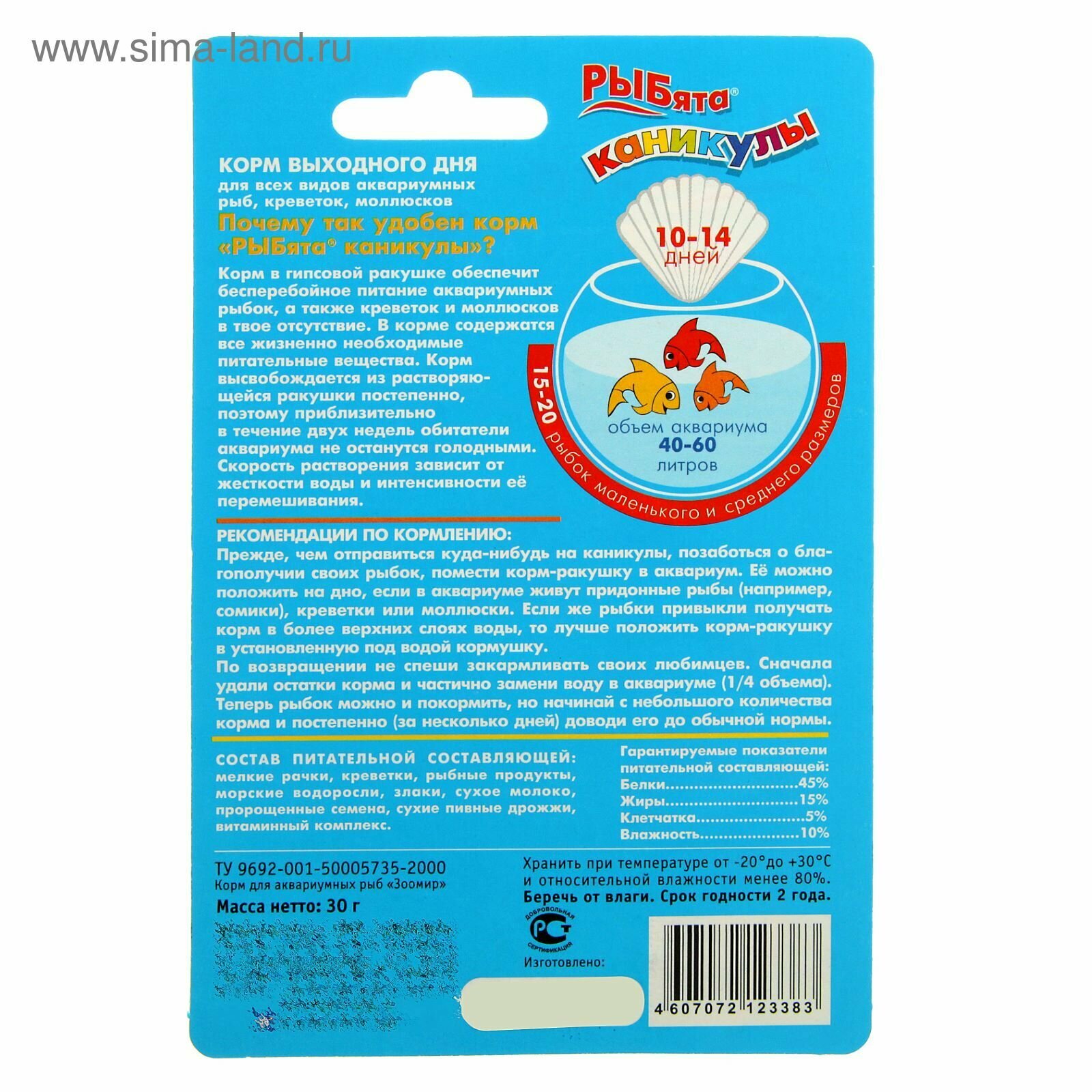 РЫБята каникулы корм выходного дня для всех видов аквариумных рыб 564 0,03 кг 34583