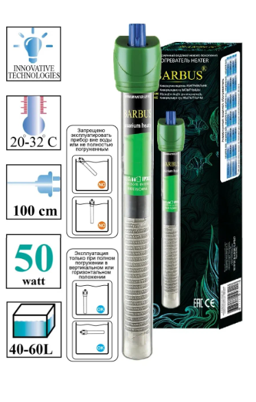 Ниже Вы можете прочитать отзывы на Обогреватель терморегулятор стекло 50ватт, для аквариума 40-60л, 100см электрошнур (Барбус) heater 002, ознакомится с подробными характеристиками, посмотреть интересные обзоры и фотографии на Обогреватель терморегулятор стекло 50ватт, для аквариума 40-60л, 100см электрошнур (Барбус) heater 002.