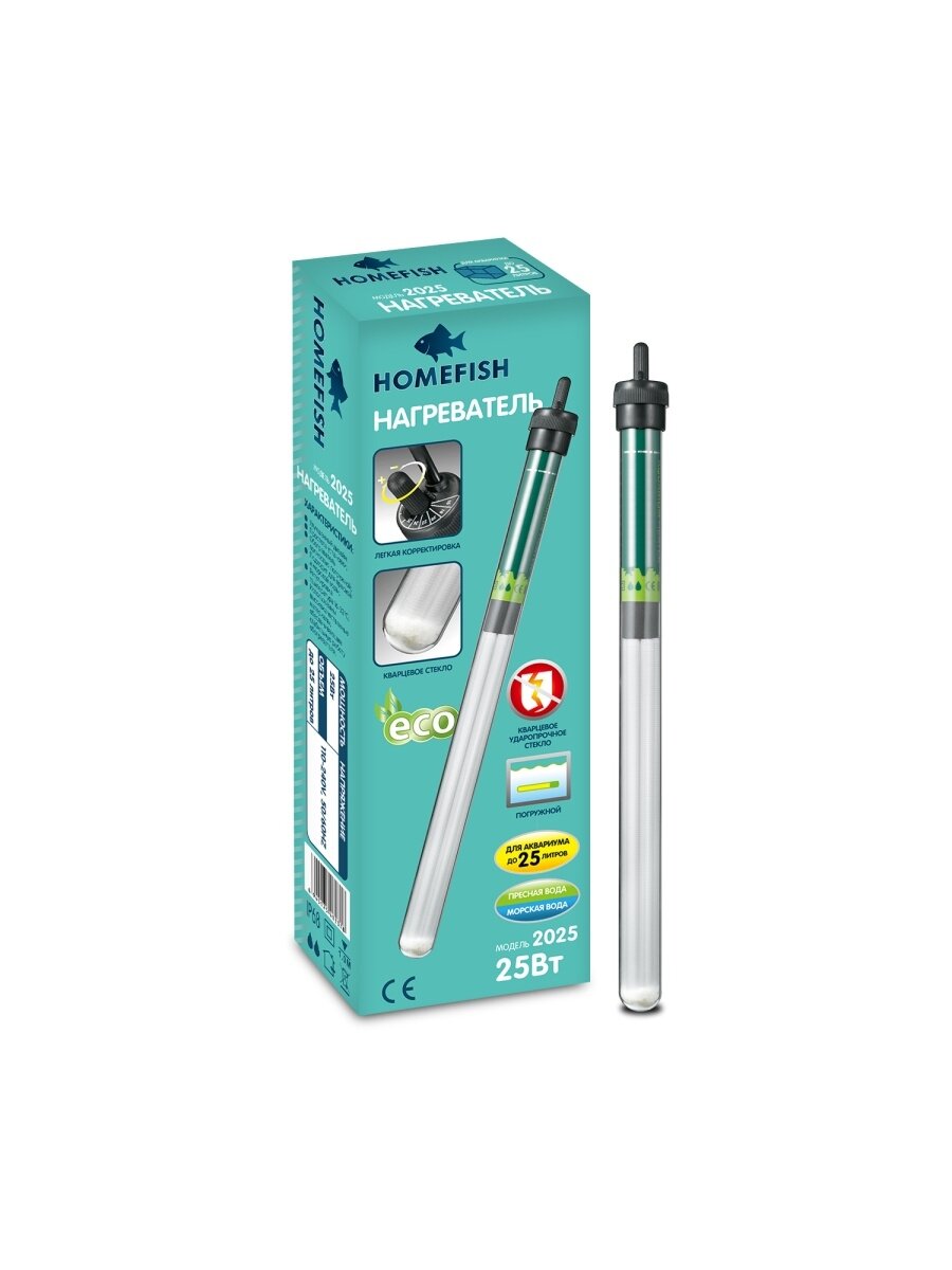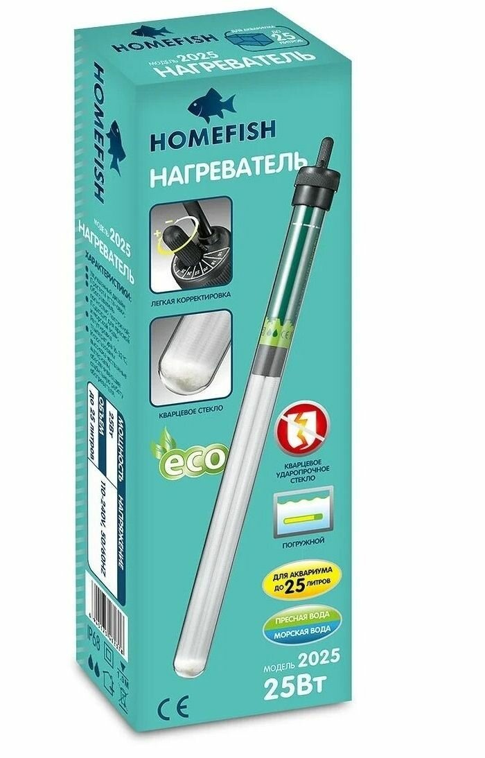 Обогреватель Homefish 2025 погружной для аквариума до 25л, 25 Вт