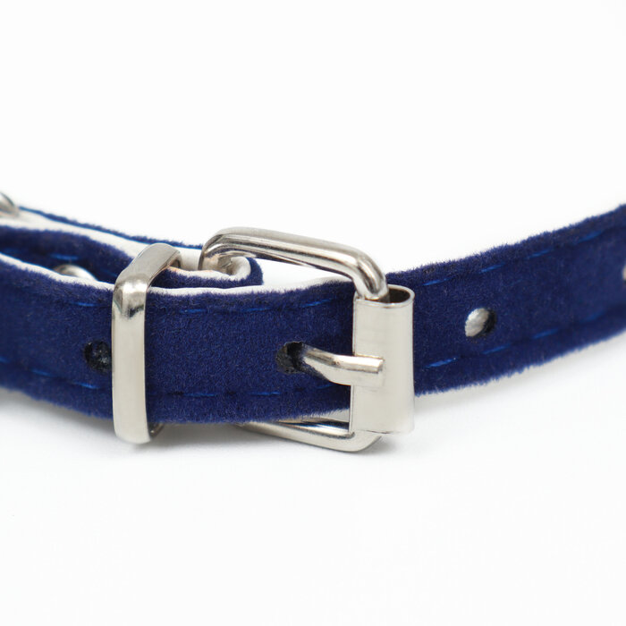 Ошейник бархатистый с сердечками, 32 х 1 см, ОШ 23-29, текстиль и кожзам, синий