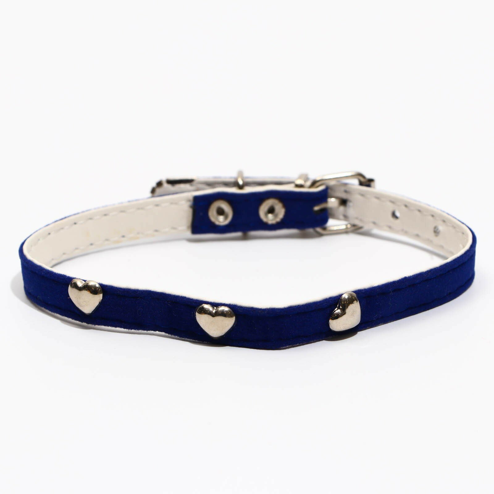 Купить Ошейник бархатистый с сердечками, 32,5 х 1 см, текстиль и кожзам, синий