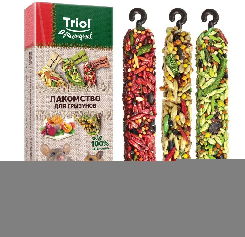TRIOL™ Лакомство для грызунов ассорти (с фруктами, с овощами, с мёдом и хитином) Original интересное: