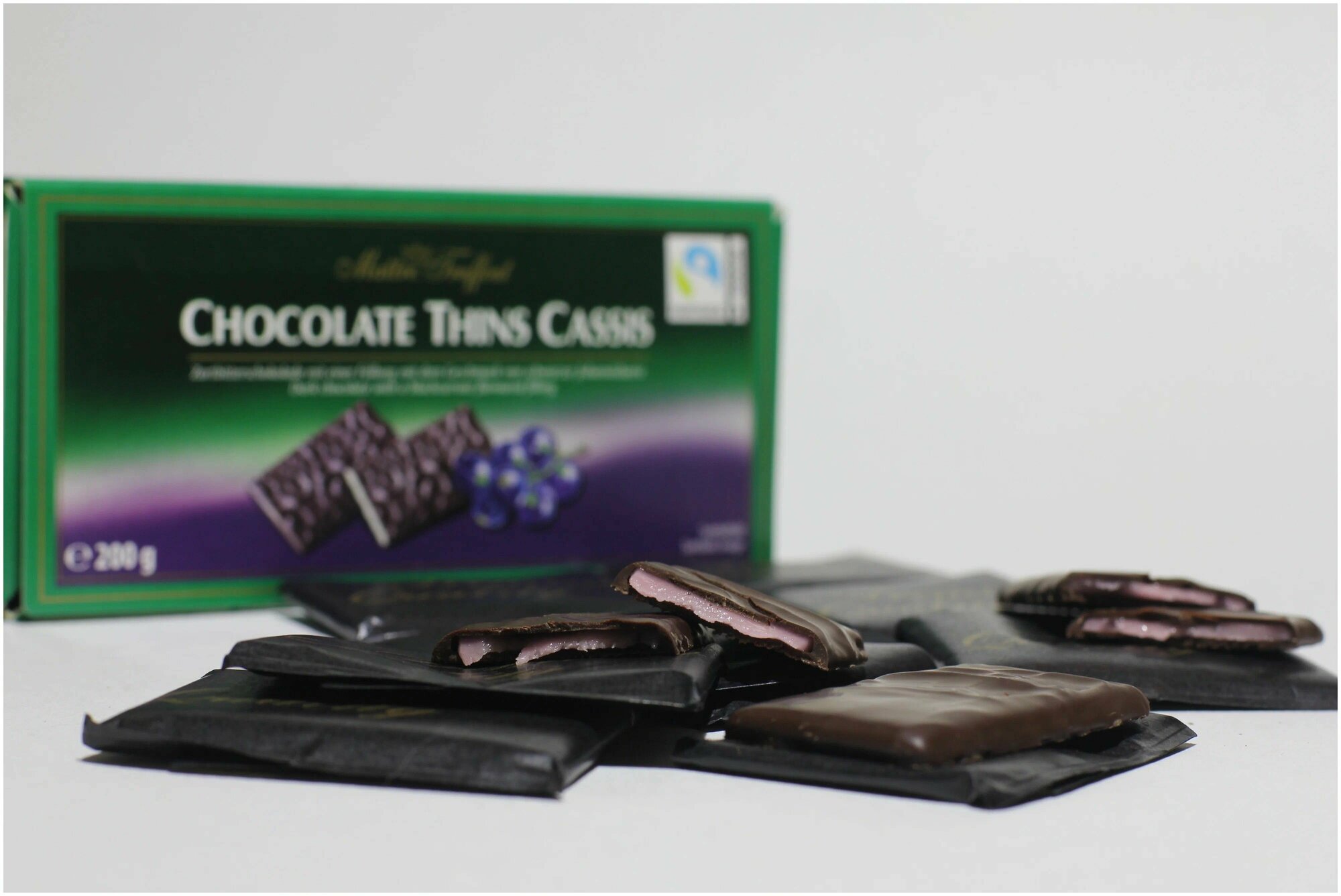 Темный шоколад со вкусом черной смородины в пластинках Maitre Truffout (Германия) 200 гр.