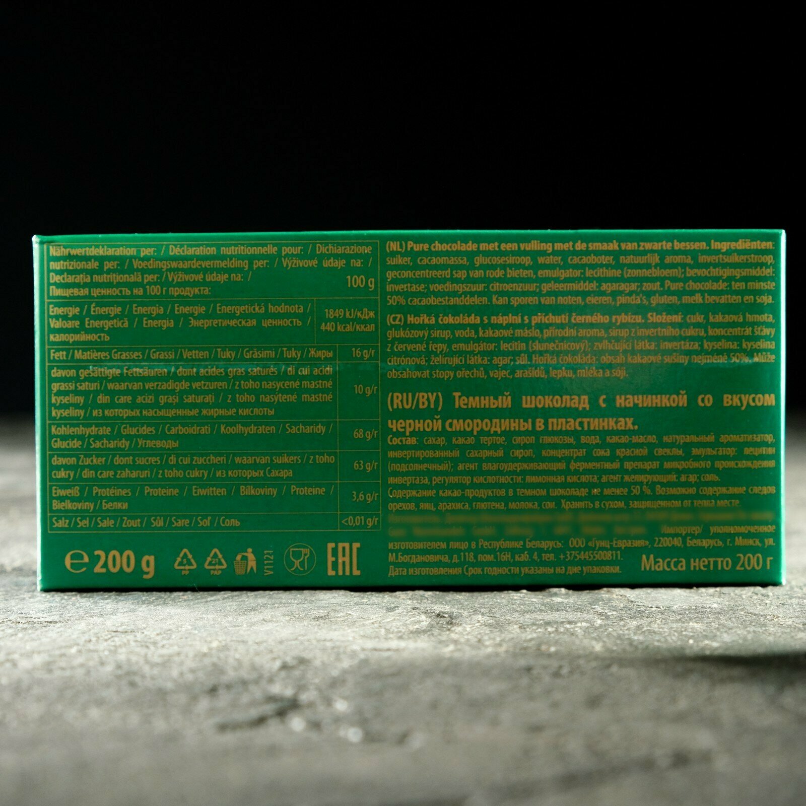 Купить Темный шоколад с начинкой со вкусом черной смородины в пластинках, 200 г