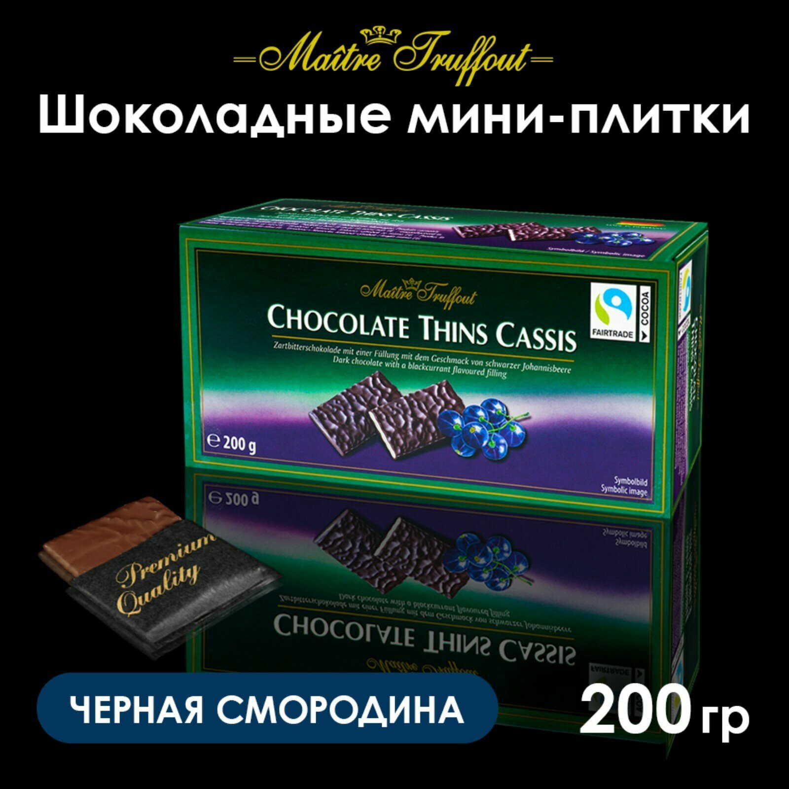 Темный шоколад со вкусом черной смородины в пластинках Maitre Truffout (Германия) 200 гр. х 2 шт.